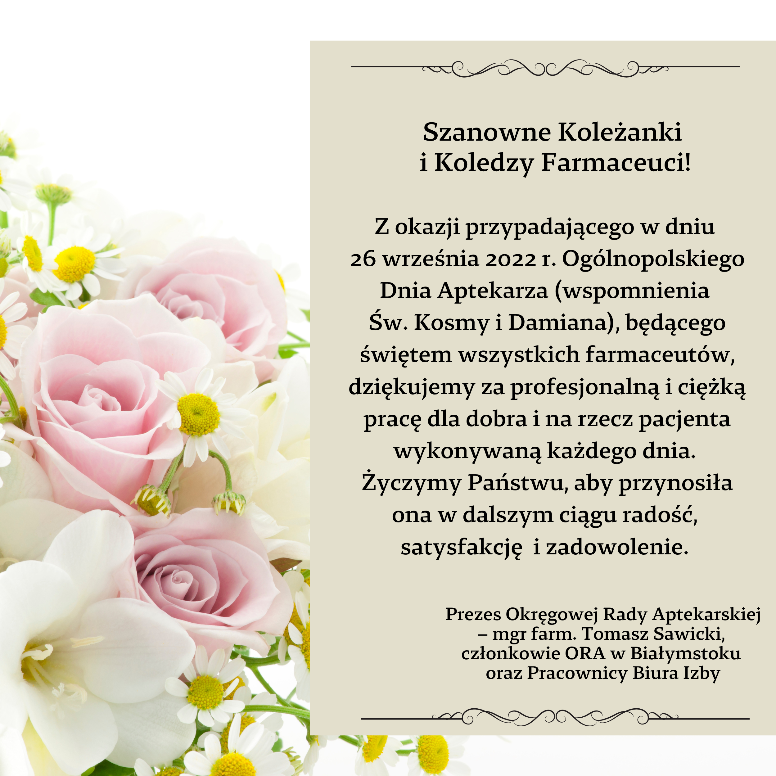 Życzenia z okazji Ogólnopolskiego Dnia Aptekarza
