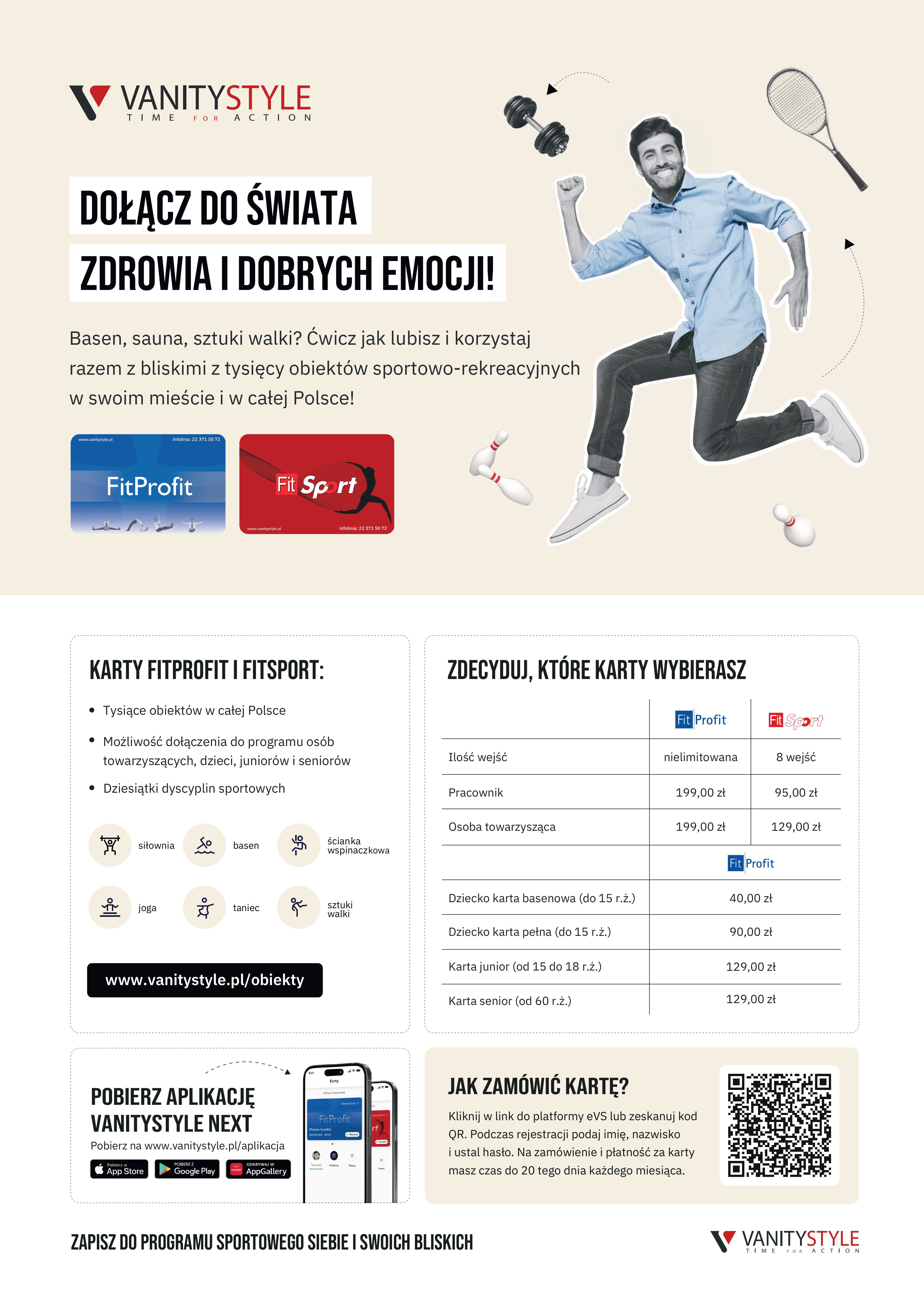 Okręgowa Izba Aptekarska w Białymstoku, we współpracy z firmą VanityStyle, serdecznie zaprasza do skorzystania z oferty kart sportowo-rekreacyjnych. Program jest skierowany do członków naszej Izby oraz ich bliskich, oferując dostęp do tysięcy obiektów sportowych na terenie całej Polski.